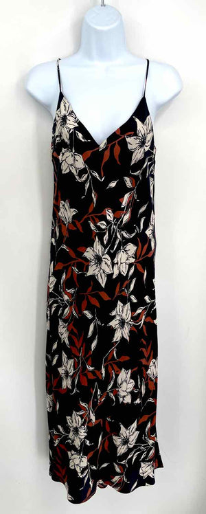 RAG & BONE Black Beige Multi Silk Blend Floral Print Spaghetti Strap Dress