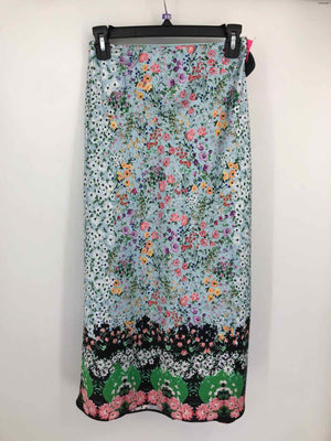 ALICE & OLIVIA Lt Blue Green Multi Floral Print Midi Length Size 2 (XS) Skirt