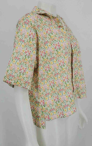 FRANK & EILEEN Yellow Green Linen Floral Print Short Sleeves Size MEDIUM (M) Top