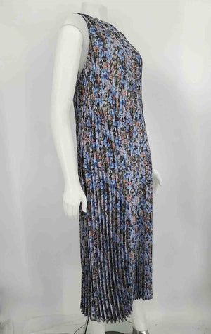 VINCE Lt Blue Green Multi Crinkle Floral Sleeveless Size MEDIUM (M) Dress
