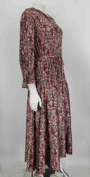 VINCE Pink Green Multi Crinkle Floral Maxi Length Size MEDIUM (M) Dress