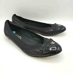 CHANEL Black Leather Made in Italy Ruffle Ballet Flat Shoes
