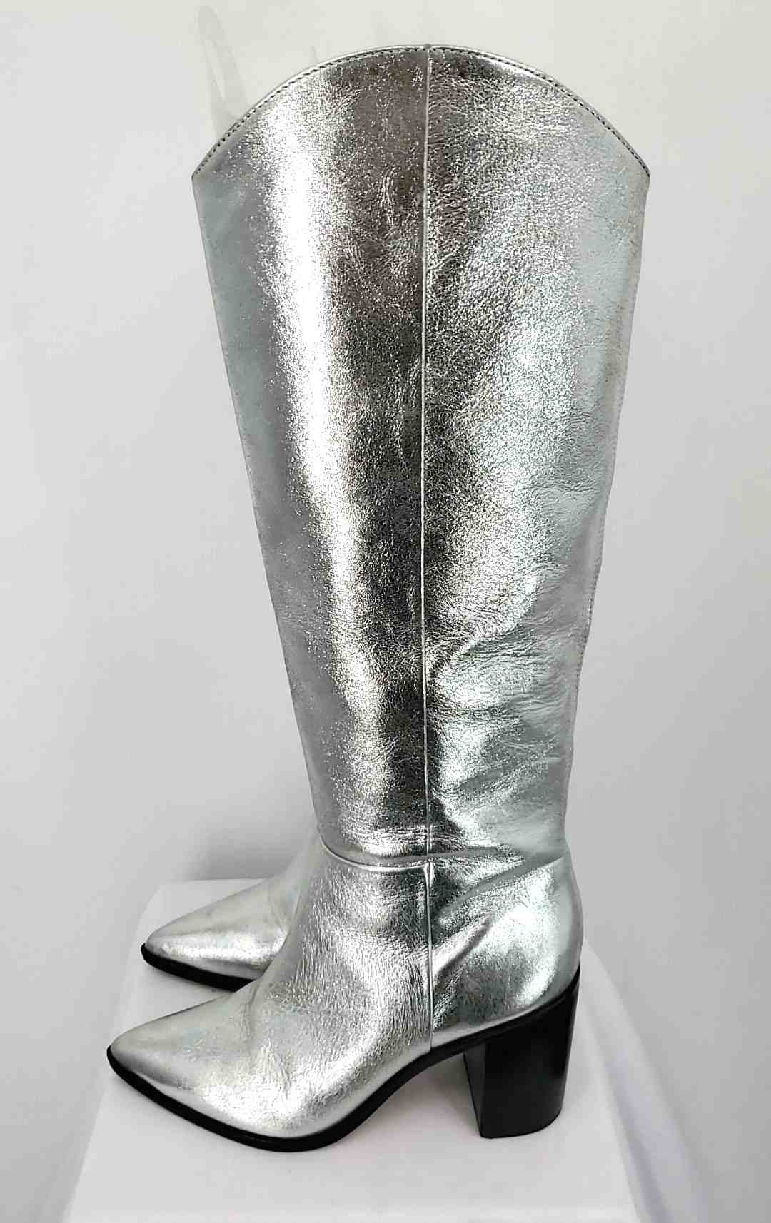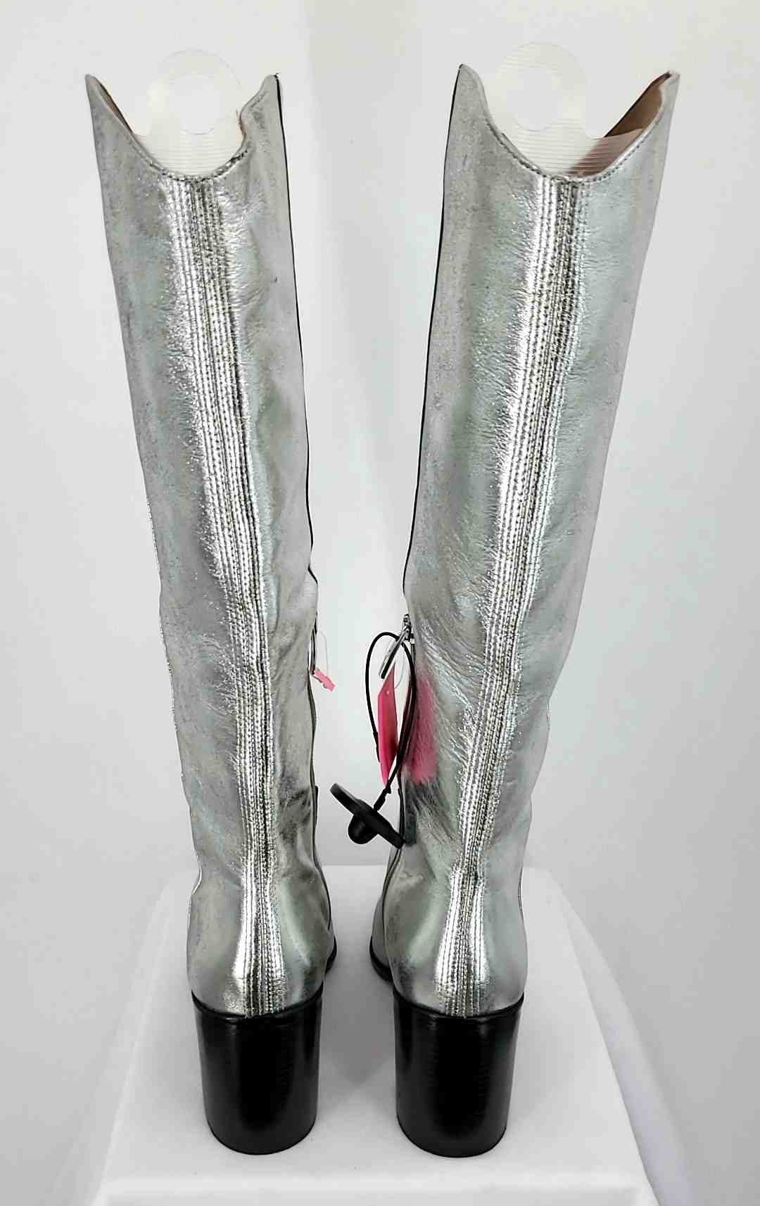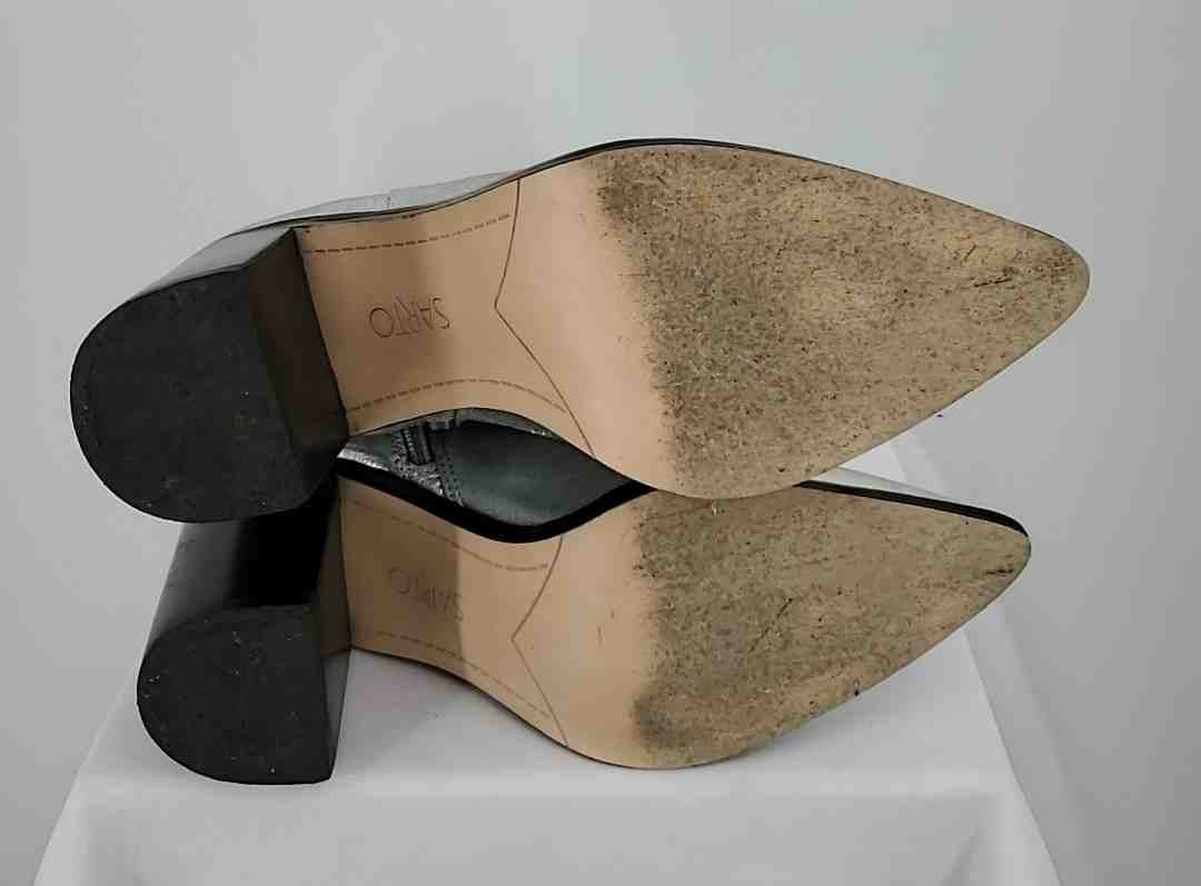 FRANCO SARTO Silver Dk Brown Leather Upper Heel Metallic Boot Shoes