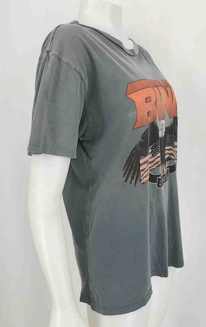 ANINE BING Gray Orange Multi Eagle Short Sleeves Size LARGE (L) Top