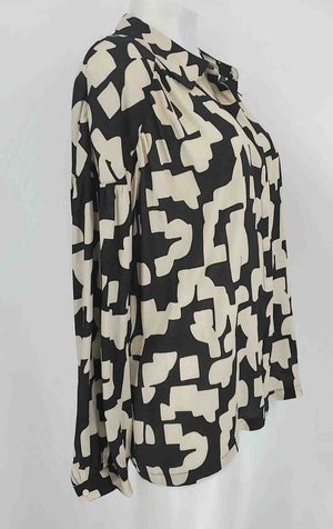 VINCE Black Beige Silk & Spandex Print Shirt Size LARGE (L) Top