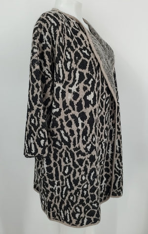 JOIE Mocha White Wool Blend Animal Print Open Cardigan Size X-SMALL Sweater