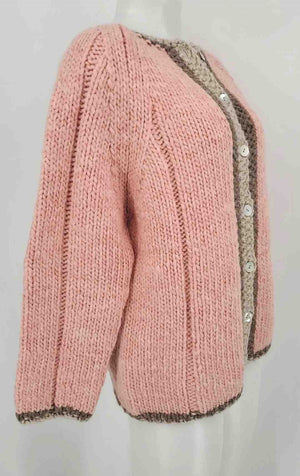 FRANCES VALENTINE Pink Tan Multicolor Crochet Longsleeve Stripe Trim Sweater
