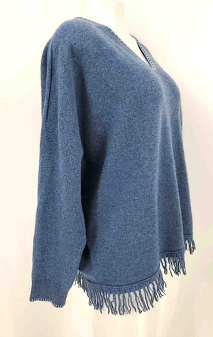 JOHNNY WAS Blue 100% Cashmere Longsleeve Fringe Trim Size MEDIUM (M) Sweater