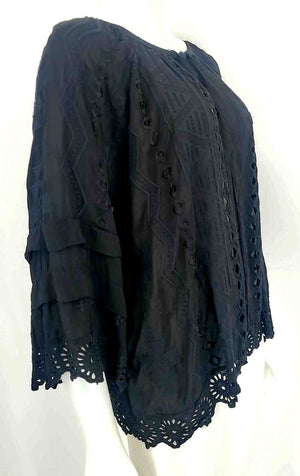JOHNNY WAS Black Embroidered Half Sleeve Size X-LARGE Top