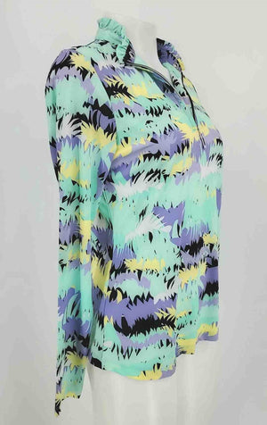 SUNSENSE Mint Green Lavender Multi Print Half Zip Size SMALL (S) Top