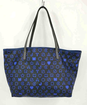 MARC JACOBS Black Royal Blue Coated Canvas Pre Loved Tote Purse