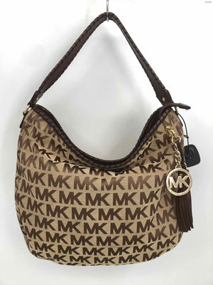 MICHAEL KORS Brown Tan Leather & Canvas Monogram Shoulder Bag Purse