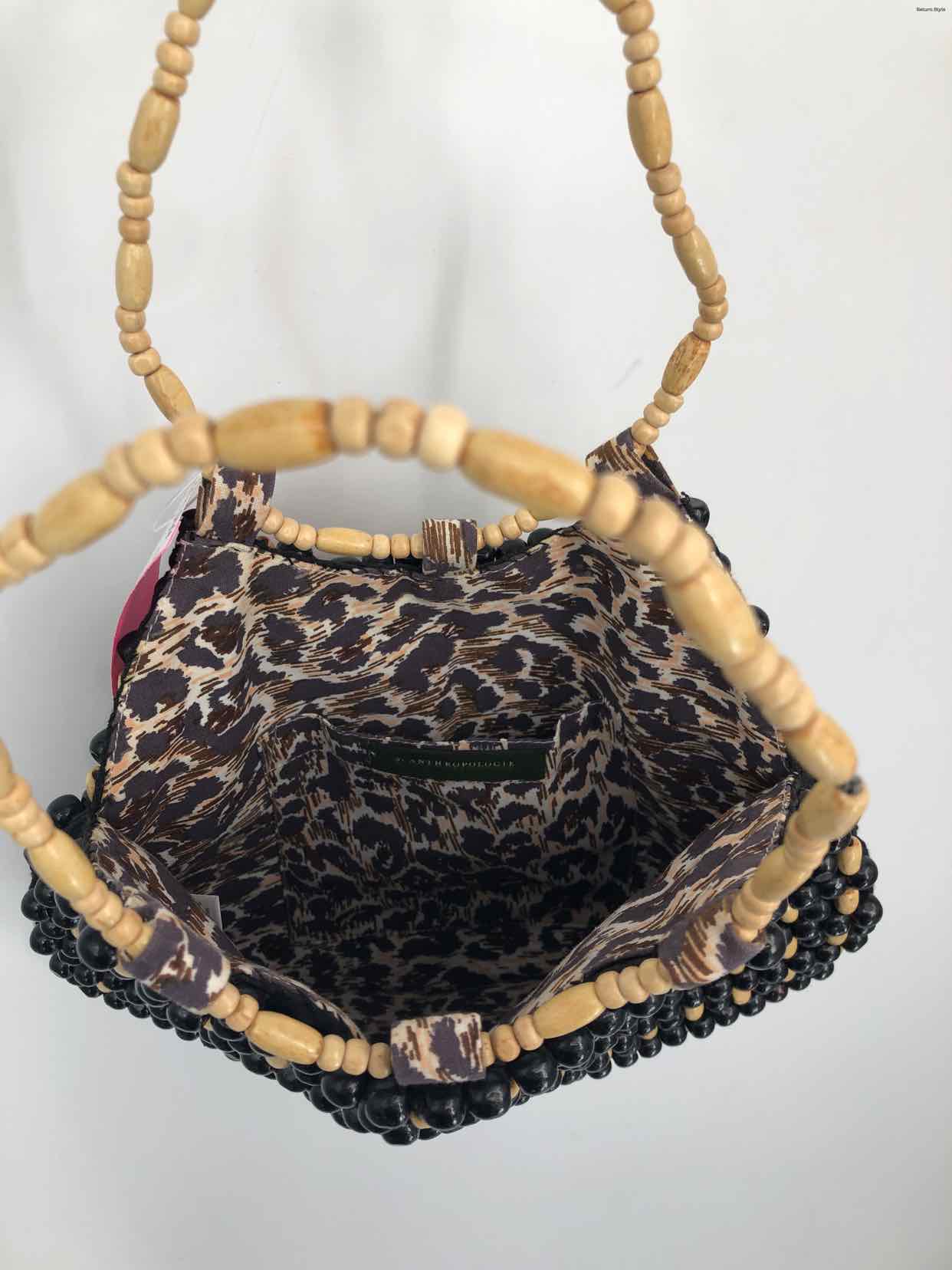 ANTHROPOLOGIE Black Beige Wool Pre Loved Beaded Purse
