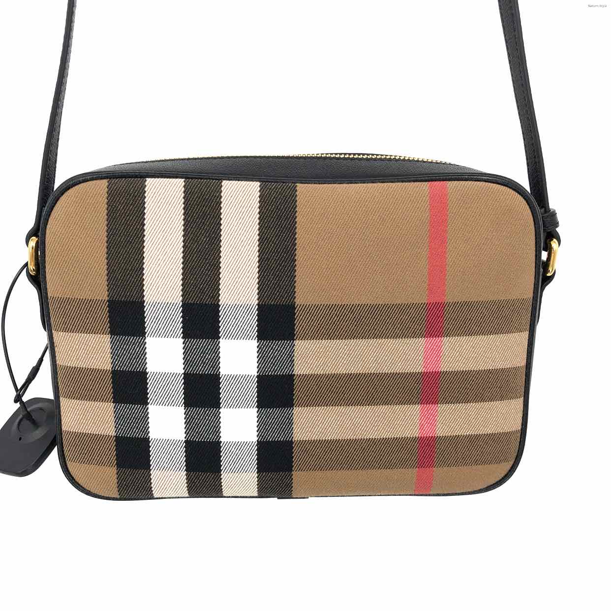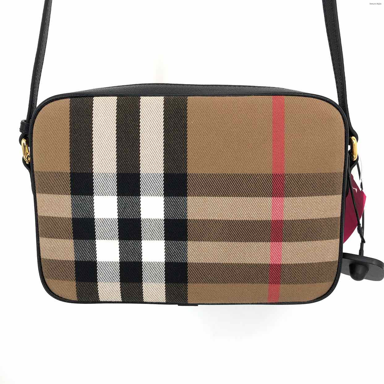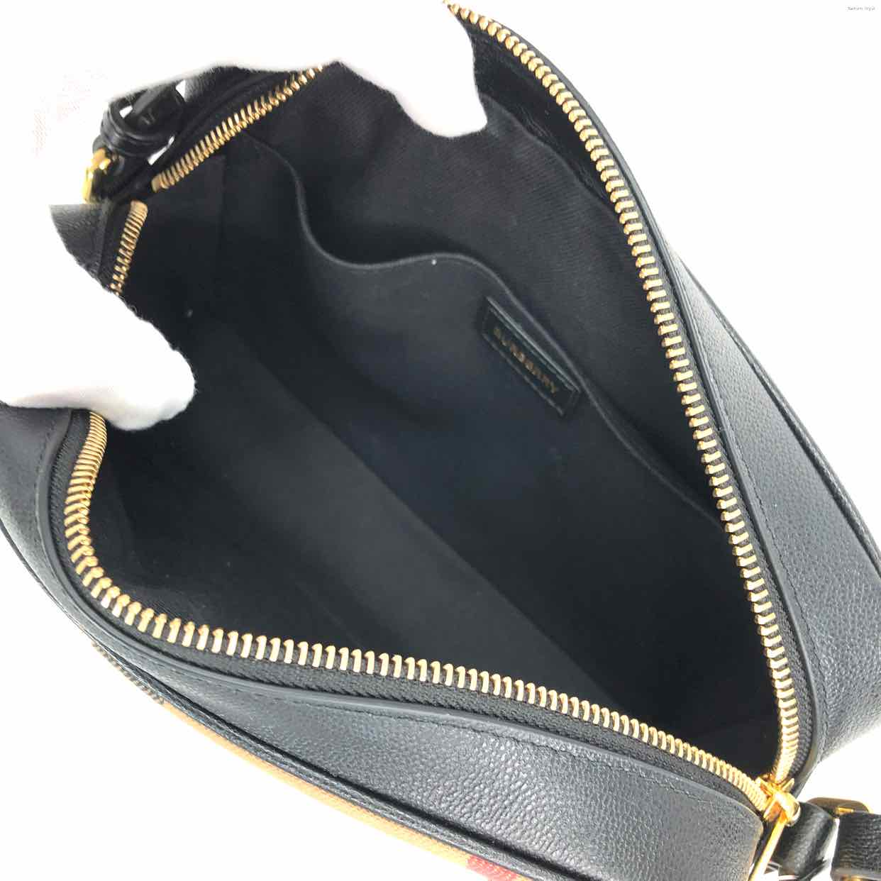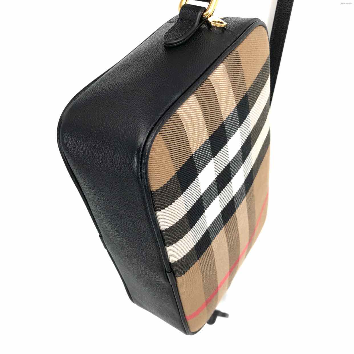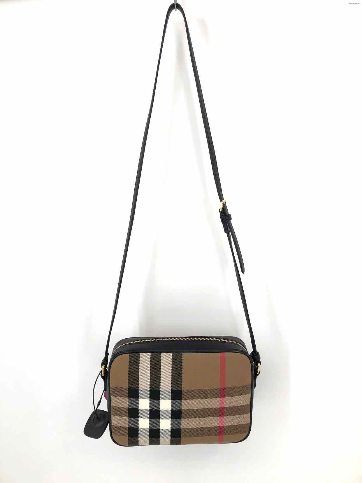 BURBERRY Tan Black Canvas Leather Trim Pre Loved Crossbody Purse