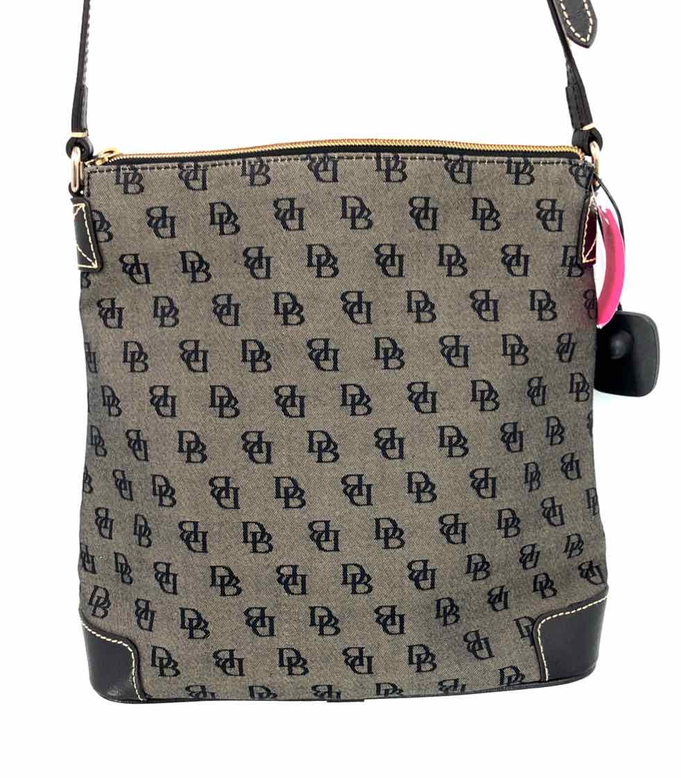 DOONEY & BOURKE Gray Black Canvas & Leather Monogram Crossbody Purse