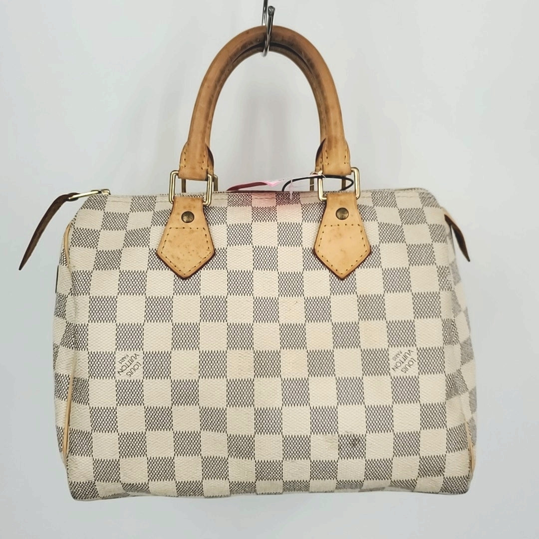 {"id":8836515332232,"title":"LOUIS VUITTON Beige Canvas \u0026 Leather Pre Loved Damier Handbag Purse","handle":"louis-vuitton-beige-canvas-leather-pre-loved-damier-handbag-purse","description":"\u003cfont color=\"#000000\"\u003eSpeedy 25, SP0077\u003cbr\u003e\u003c\/font\u003e\u003cbr\u003e\n\u003cul\u003e\n\u003cli\u003e\n\u003cb\u003eBrand\u003c\/b\u003e = LOUIS VUITTON\u003c\/li\u003e\n\u003cli\u003e\n\u003cb\u003eColor\u003c\/b\u003e = Beige\u003c\/li\u003e\n\u003cli\u003e\n\u003cb\u003eFabric\u003c\/b\u003e = Canvas \u0026amp; Leather\u003c\/li\u003e\n\u003cli\u003e\n\u003cb\u003eCondition\u003c\/b\u003e = Pre Loved\u003c\/li\u003e\n\u003cli\u003e\n\u003cb\u003eOrigin\u003c\/b\u003e = Made in France\u003c\/li\u003e\n\u003cli\u003e\n\u003cb\u003ePattern\u003c\/b\u003e = Damier\u003c\/li\u003e\n\u003cli\u003e\n\u003cb\u003eShape\/Cut\u003c\/b\u003e = Handbag\u003c\/li\u003e\n\u003cbr\u003e\u003cbr\u003e\n\u003c\/ul\u003e\n\u003cb\u003e Item Number: \u003c\/b\u003e\n1680-5827\u003cbr\u003e\u003cbr\u003e\n\u003cb\u003e Item ID: \u003c\/b\u003e\n\u003cfont color=\"#000000\"\u003e715772\u003c\/font\u003e\u003cbr\u003e\u003cbr\u003e\n\u003cb\u003e Category: \u003c\/b\u003e\n\u003cfont color=\"#000000\"\u003ePurse\u003c\/font\u003e\u003cbr\u003e\u003cbr\u003e\n\n\u003cli\u003eFrom: 4\/21\/26 - \u0026amp; After Price: $530.99\u003c\/li\u003e\n\n\u003cbr\u003e\nPre Owned, Selected with Care","published_at":"2026-02-20T16:51:24-08:00","created_at":"2026-02-20T16:56:40-08:00","vendor":"LOUIS VUITTON","type":"Purse","tags":["Beige","Canvas \u0026 Leather","closet_2680","Damier","Handbag","LOUIS VUITTON","Made in France","Pre Loved"],"price":58999,"price_min":58999,"price_max":58999,"available":true,"price_varies":false,"compare_at_price":null,"compare_at_price_min":0,"compare_at_price_max":0,"compare_at_price_varies":false,"variants":[{"id":44822911877256,"title":"Default Title","option1":"Default Title","option2":null,"option3":null,"sku":"715772","requires_shipping":true,"taxable":true,"featured_image":null,"available":true,"name":"LOUIS VUITTON Beige Canvas \u0026 Leather Pre Loved Damier Handbag Purse","public_title":null,"options":["Default Title"],"price":58999,"weight":907,"compare_at_price":null,"inventory_management":"shopify","barcode":"00715772","requires_selling_plan":false,"selling_plan_allocations":[]}],"images":["\/\/returnstyle.com\/cdn\/shop\/files\/6148cda48c31be2b0d683fdf71111fca_eee74767-fc39-4a3b-9270-4949b3e5ffad.jpg?v=1771636036","\/\/returnstyle.com\/cdn\/shop\/files\/f1ac5e2e19dc23730db4089cf92a43da_e34d60c0-2382-4212-8033-bda410e5a025.jpg?v=1771636036","\/\/returnstyle.com\/cdn\/shop\/files\/a0f2be857027d37119c1948e7033841a_bff7ed4c-f384-4030-a84f-76557f42d777.jpg?v=1771636036","\/\/returnstyle.com\/cdn\/shop\/files\/87fd6f3d08ac48f443fb9d12980107d2_d85cca13-09c4-4770-bc90-d233cb465eef.jpg?v=1771636036","\/\/returnstyle.com\/cdn\/shop\/files\/b839226e16625b05a4bb97aebfd57615_040fd0e3-f8be-47f8-9618-81b1aaa02b67.jpg?v=1771636036","\/\/returnstyle.com\/cdn\/shop\/files\/a659c6d3eee5746d8e264fcd4040828e_f020f0a1-6b46-402c-a164-01a9051f493e.jpg?v=1771636036","\/\/returnstyle.com\/cdn\/shop\/files\/6c38bc062aea87e0dc259e39019c4bfa.jpg?v=1771636036"],"featured_image":"\/\/returnstyle.com\/cdn\/shop\/files\/6148cda48c31be2b0d683fdf71111fca_eee74767-fc39-4a3b-9270-4949b3e5ffad.jpg?v=1771636036","options":["Title"],"media":[{"alt":null,"id":36118657466504,"position":1,"preview_image":{"aspect_ratio":1.0,"height":1080,"width":1080,"src":"\/\/returnstyle.com\/cdn\/shop\/files\/6148cda48c31be2b0d683fdf71111fca_eee74767-fc39-4a3b-9270-4949b3e5ffad.jpg?v=1771636036"},"aspect_ratio":1.0,"height":1080,"media_type":"image","src":"\/\/returnstyle.com\/cdn\/shop\/files\/6148cda48c31be2b0d683fdf71111fca_eee74767-fc39-4a3b-9270-4949b3e5ffad.jpg?v=1771636036","width":1080},{"alt":null,"id":36118657499272,"position":2,"preview_image":{"aspect_ratio":1.0,"height":1080,"width":1080,"src":"\/\/returnstyle.com\/cdn\/shop\/files\/f1ac5e2e19dc23730db4089cf92a43da_e34d60c0-2382-4212-8033-bda410e5a025.jpg?v=1771636036"},"aspect_ratio":1.0,"height":1080,"media_type":"image","src":"\/\/returnstyle.com\/cdn\/shop\/files\/f1ac5e2e19dc23730db4089cf92a43da_e34d60c0-2382-4212-8033-bda410e5a025.jpg?v=1771636036","width":1080},{"alt":null,"id":36118657532040,"position":3,"preview_image":{"aspect_ratio":1.0,"height":1080,"width":1080,"src":"\/\/returnstyle.com\/cdn\/shop\/files\/a0f2be857027d37119c1948e7033841a_bff7ed4c-f384-4030-a84f-76557f42d777.jpg?v=1771636036"},"aspect_ratio":1.0,"height":1080,"media_type":"image","src":"\/\/returnstyle.com\/cdn\/shop\/files\/a0f2be857027d37119c1948e7033841a_bff7ed4c-f384-4030-a84f-76557f42d777.jpg?v=1771636036","width":1080},{"alt":null,"id":36118657564808,"position":4,"preview_image":{"aspect_ratio":1.0,"height":1080,"width":1080,"src":"\/\/returnstyle.com\/cdn\/shop\/files\/87fd6f3d08ac48f443fb9d12980107d2_d85cca13-09c4-4770-bc90-d233cb465eef.jpg?v=1771636036"},"aspect_ratio":1.0,"height":1080,"media_type":"image","src":"\/\/returnstyle.com\/cdn\/shop\/files\/87fd6f3d08ac48f443fb9d12980107d2_d85cca13-09c4-4770-bc90-d233cb465eef.jpg?v=1771636036","width":1080},{"alt":null,"id":36118657597576,"position":5,"preview_image":{"aspect_ratio":0.63,"height":1714,"width":1080,"src":"\/\/returnstyle.com\/cdn\/shop\/files\/b839226e16625b05a4bb97aebfd57615_040fd0e3-f8be-47f8-9618-81b1aaa02b67.jpg?v=1771636036"},"aspect_ratio":0.63,"height":1714,"media_type":"image","src":"\/\/returnstyle.com\/cdn\/shop\/files\/b839226e16625b05a4bb97aebfd57615_040fd0e3-f8be-47f8-9618-81b1aaa02b67.jpg?v=1771636036","width":1080},{"alt":null,"id":36118657630344,"position":6,"preview_image":{"aspect_ratio":1.0,"height":1080,"width":1080,"src":"\/\/returnstyle.com\/cdn\/shop\/files\/a659c6d3eee5746d8e264fcd4040828e_f020f0a1-6b46-402c-a164-01a9051f493e.jpg?v=1771636036"},"aspect_ratio":1.0,"height":1080,"media_type":"image","src":"\/\/returnstyle.com\/cdn\/shop\/files\/a659c6d3eee5746d8e264fcd4040828e_f