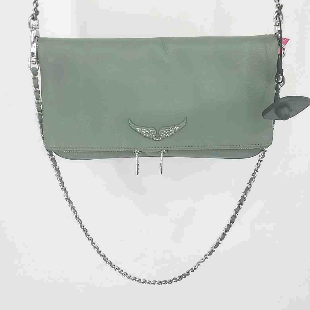 ZADIG & VOLTAIRE Green Silver Pebbled Leather Purse