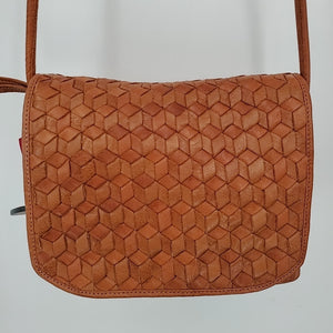 DAY & MOOD Rust Brown Leather Woven Crossbody Purse