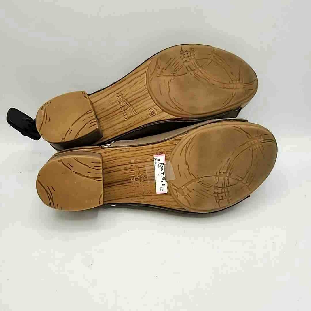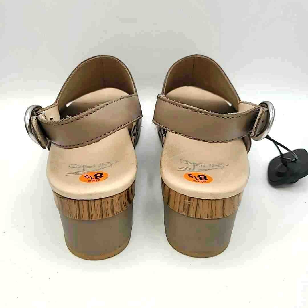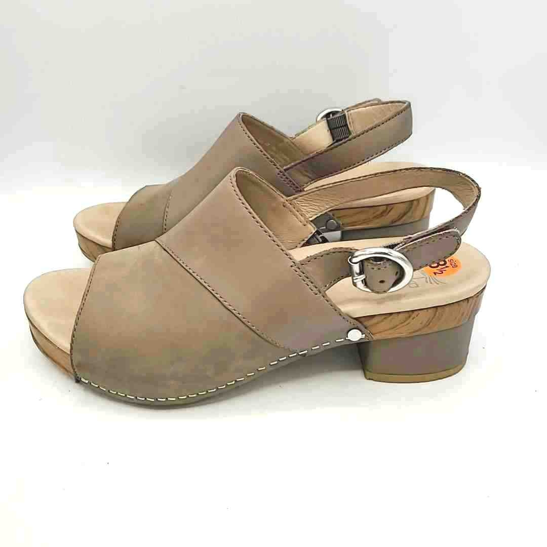 DANSKO Taupe Silver Leather Upper Sandal Sling back 2.5" Chunky Heel Shoes