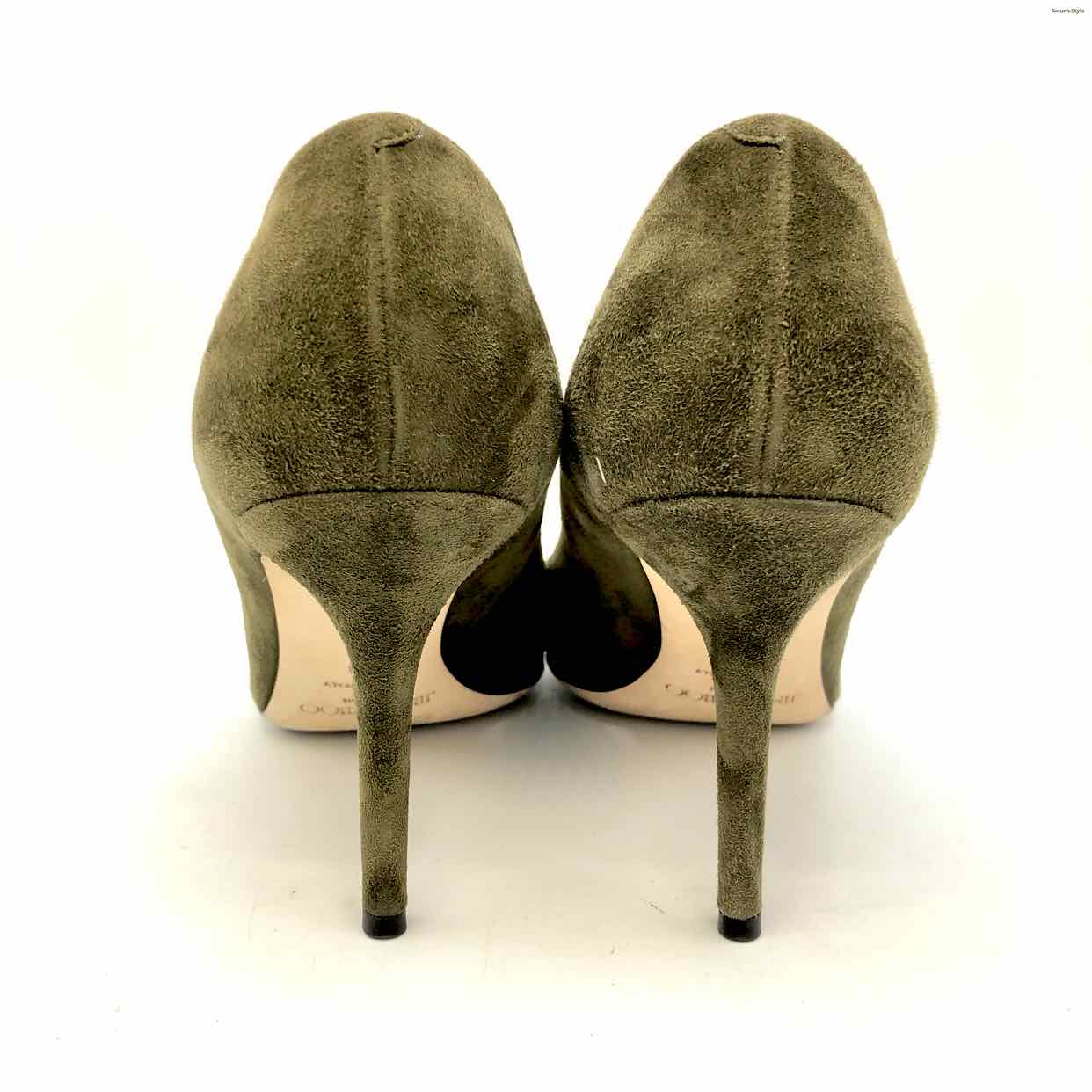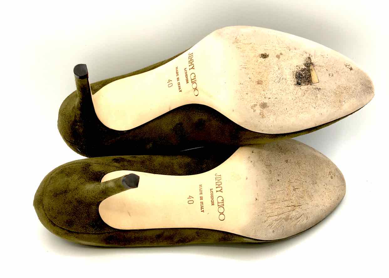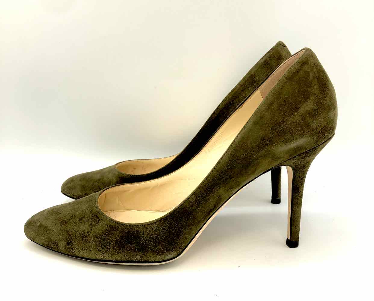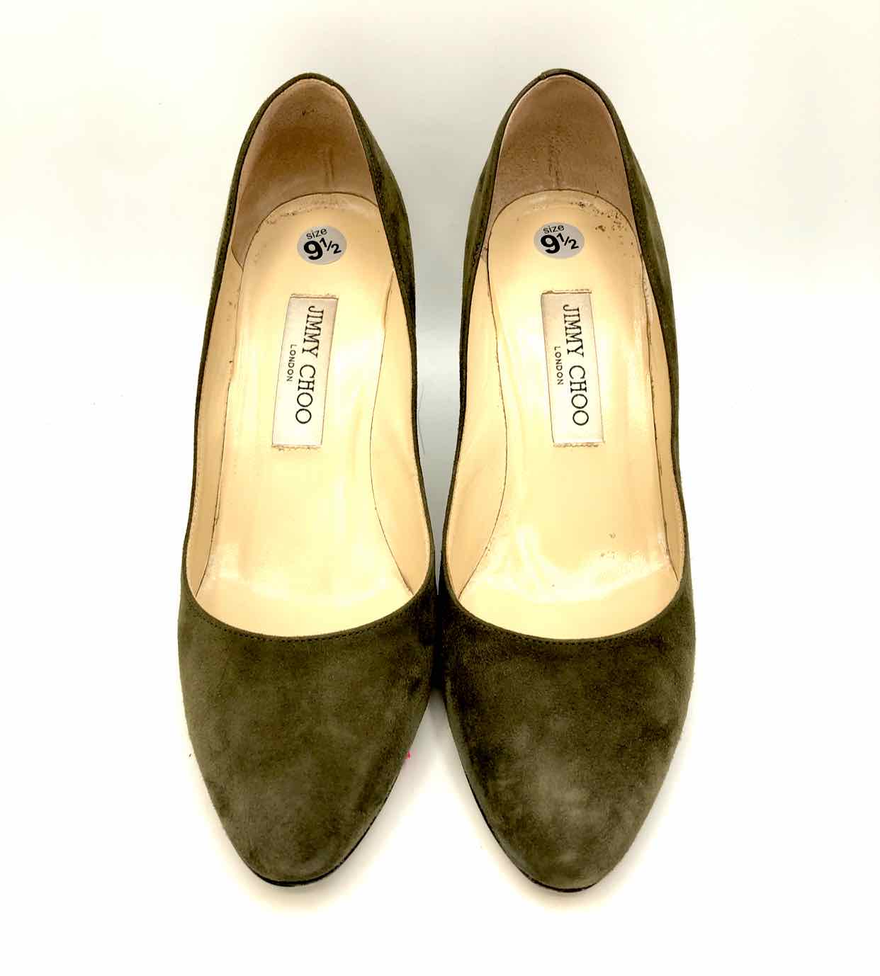 JIMMY CHOO Olive Green Suede Leather Made in Italy Pump 3.5" Chunky Heel Shoes