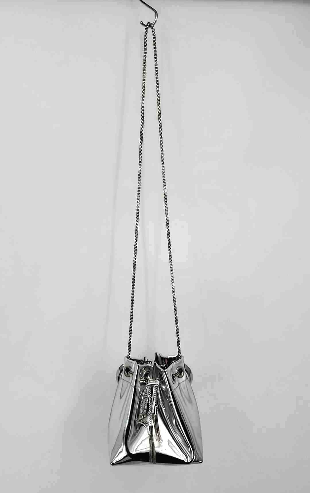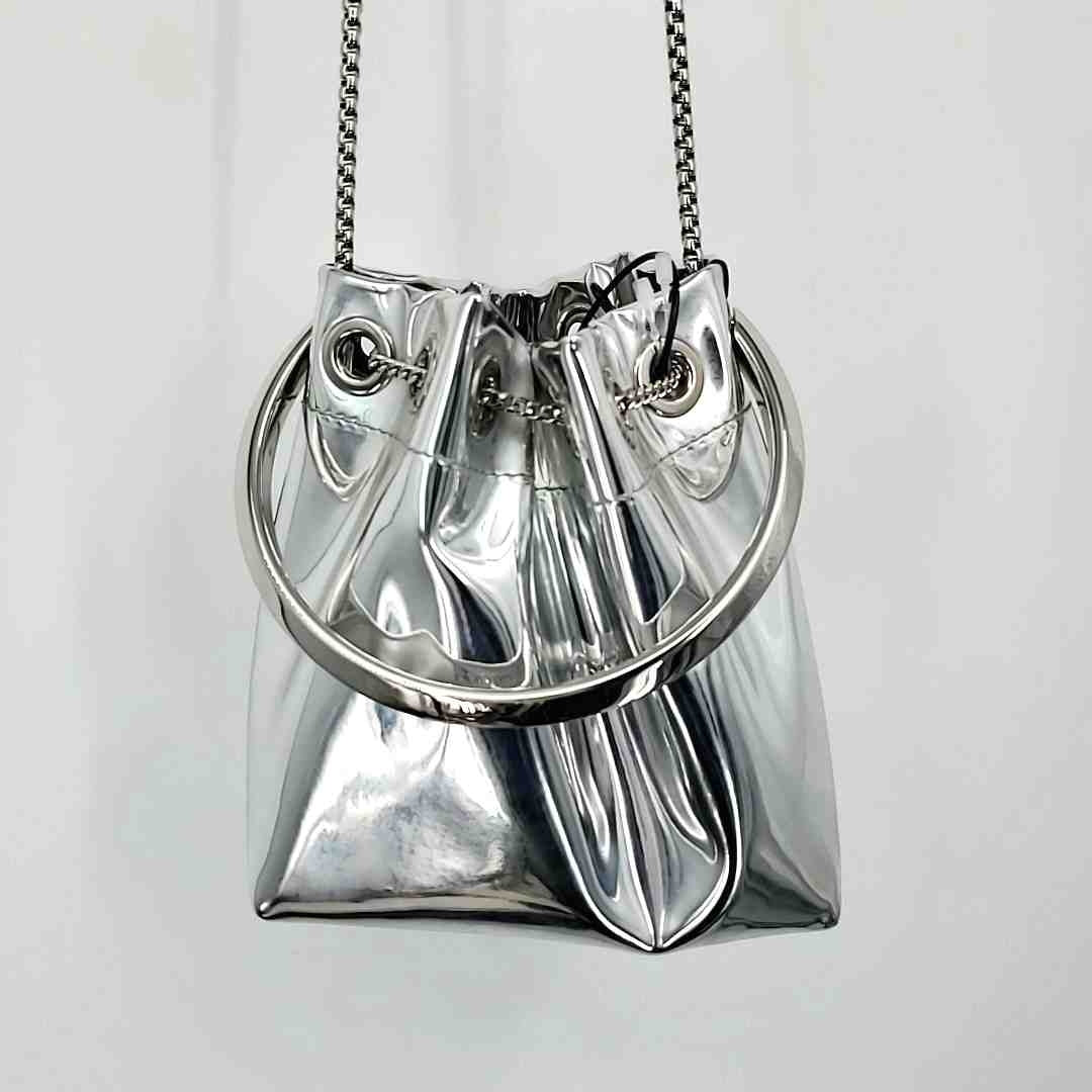 Bon Bon Silver Mirror Fabric Mini Bag with Metal Bracelet Handle $1075