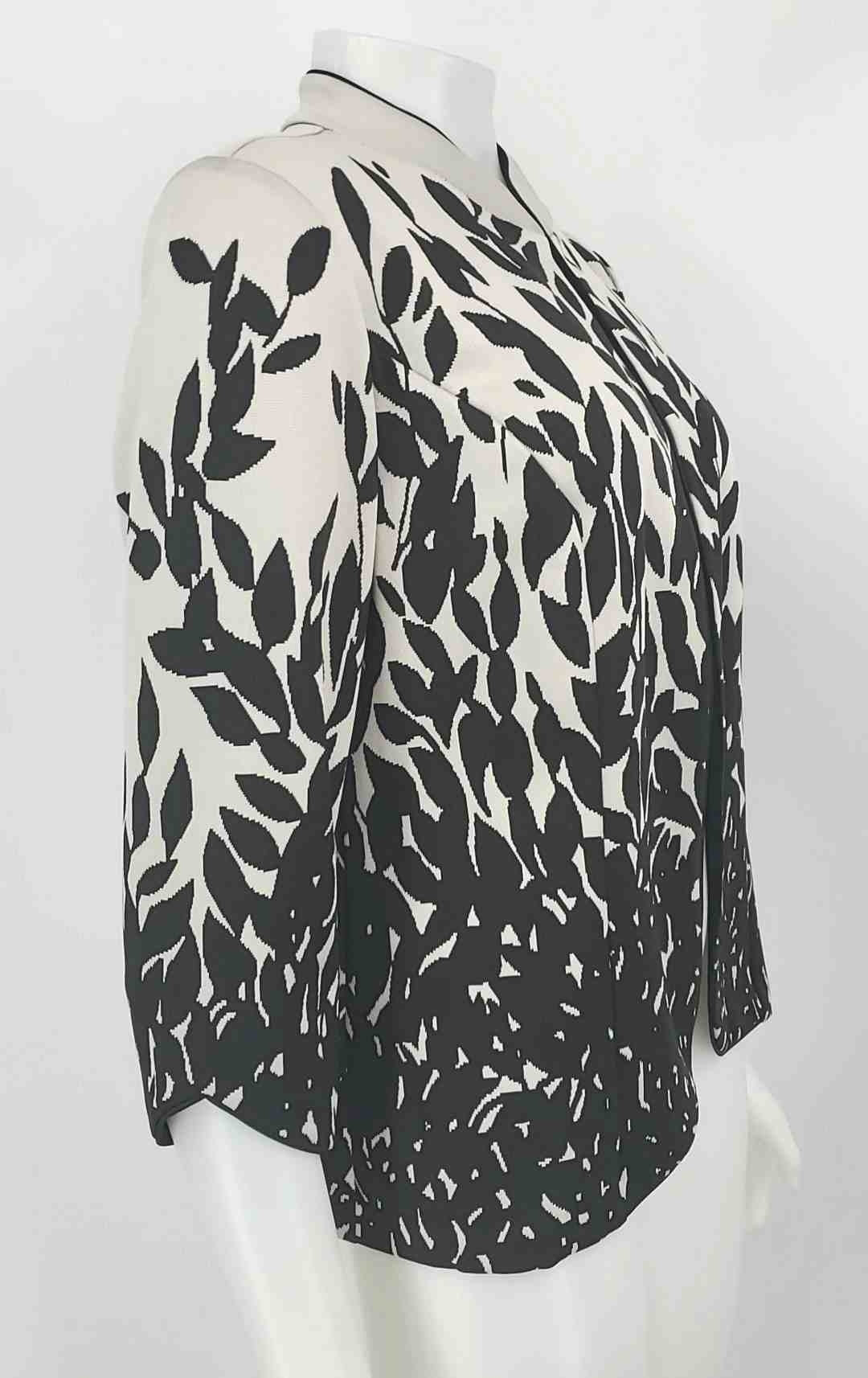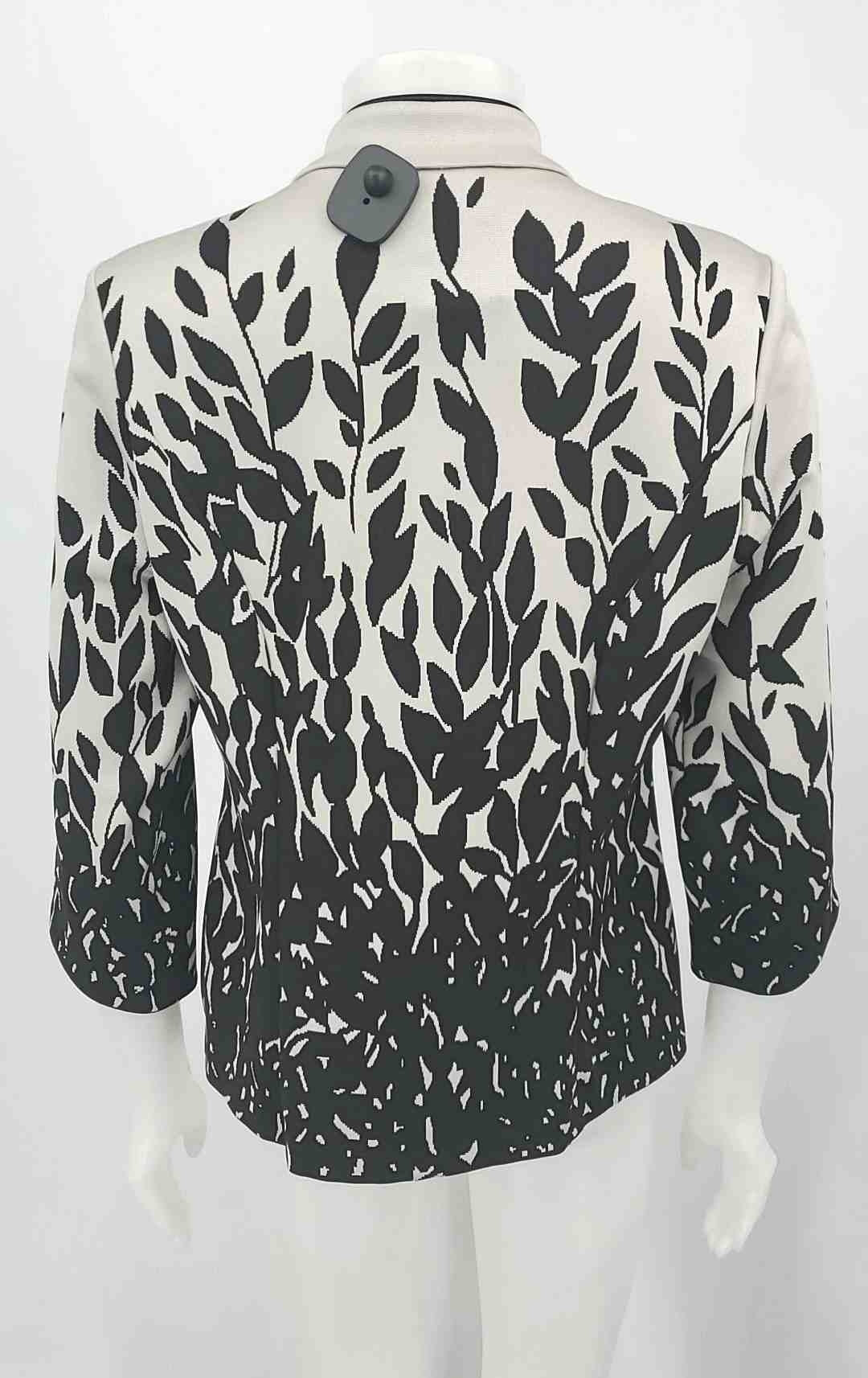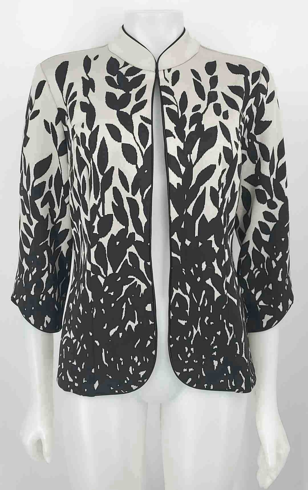 JOSEPH RIBKOFF White Black & Gray Knit Leaf Print Longsleeve Jacket