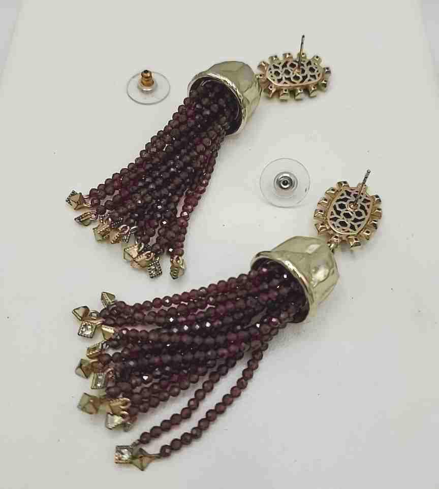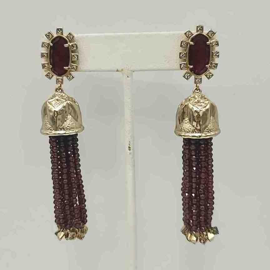 KENDRA SCOTT Pink Burgundy Gold Plate Tassell Dangle Earrings