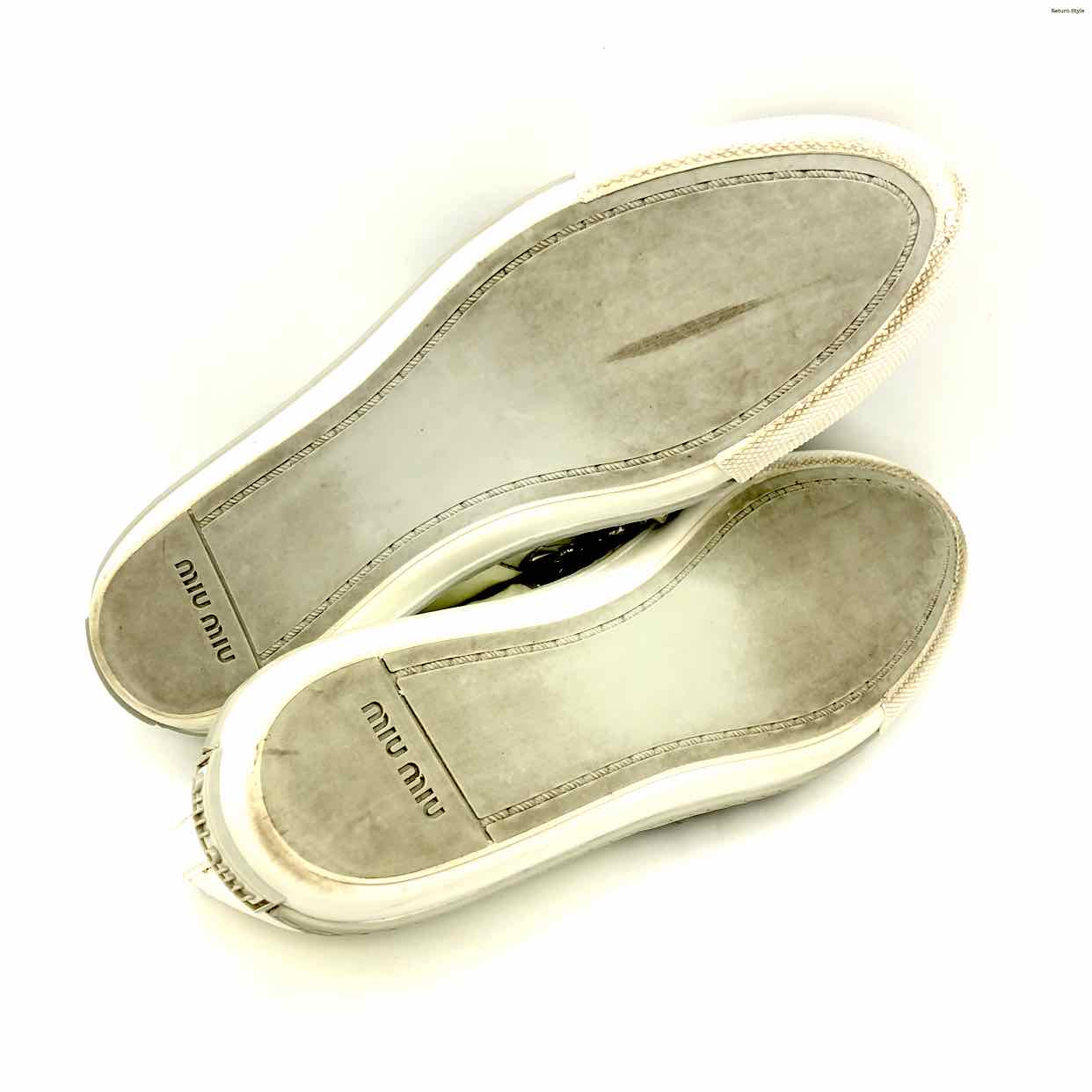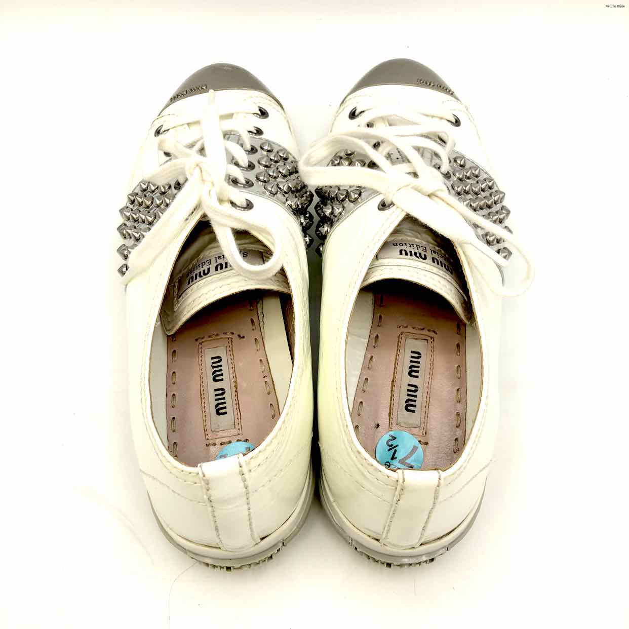 MIU MIU White Silvertone Patent Leather Spikes Sneaker Shoes