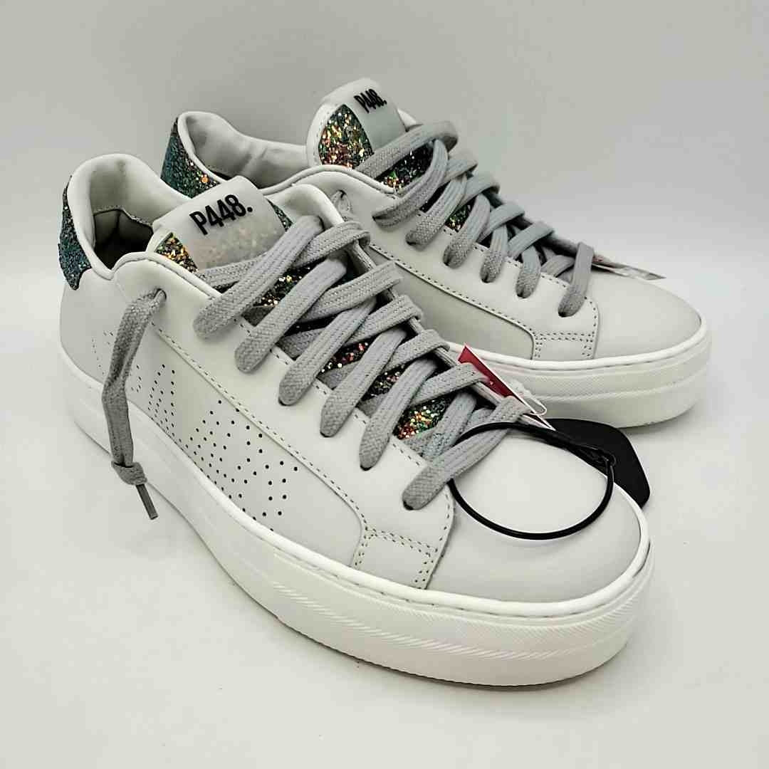 P448 White Iridescent Leather Made in Italy Glitter Sneaker Shoes